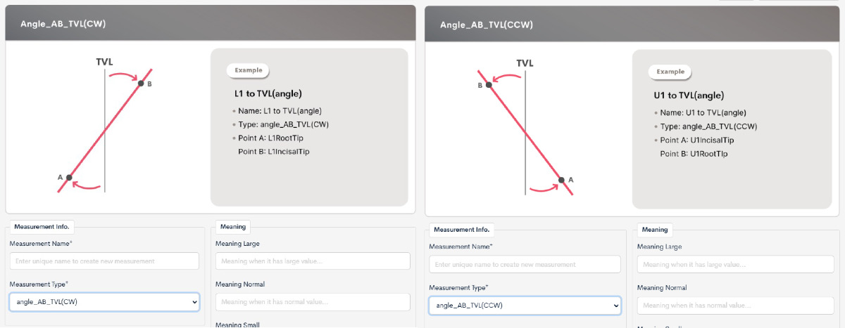 Dear Doctor, thank you for your inquiry. You can create this measurement using Angle_AB_TVL(CW) or Angle_AB_TVL(CCW). Here, TVL stands for True Vertical Line, CW means Clockwise, and CCW means Counter Clockwise, which represents the positive direction. Please refer to the illustration displayed when selecting the Measurement Type in the Measurement Wizard to confirm the correct direction. Thank you.