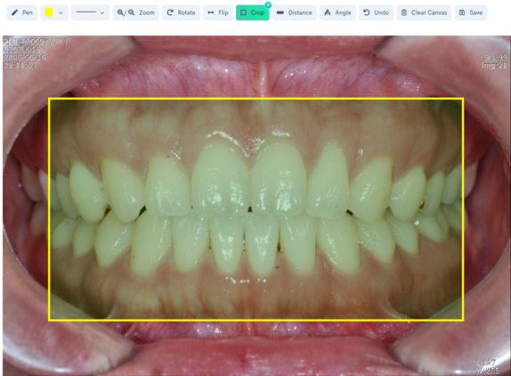 In the Viewer tab of WebCeph PREMIUM, the function to crop and edit clinical pictures is provided.