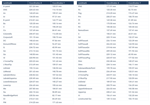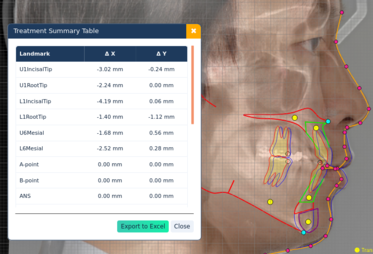 You can check the movement amount of each landmark in well-organized table and export it as an Excel file.